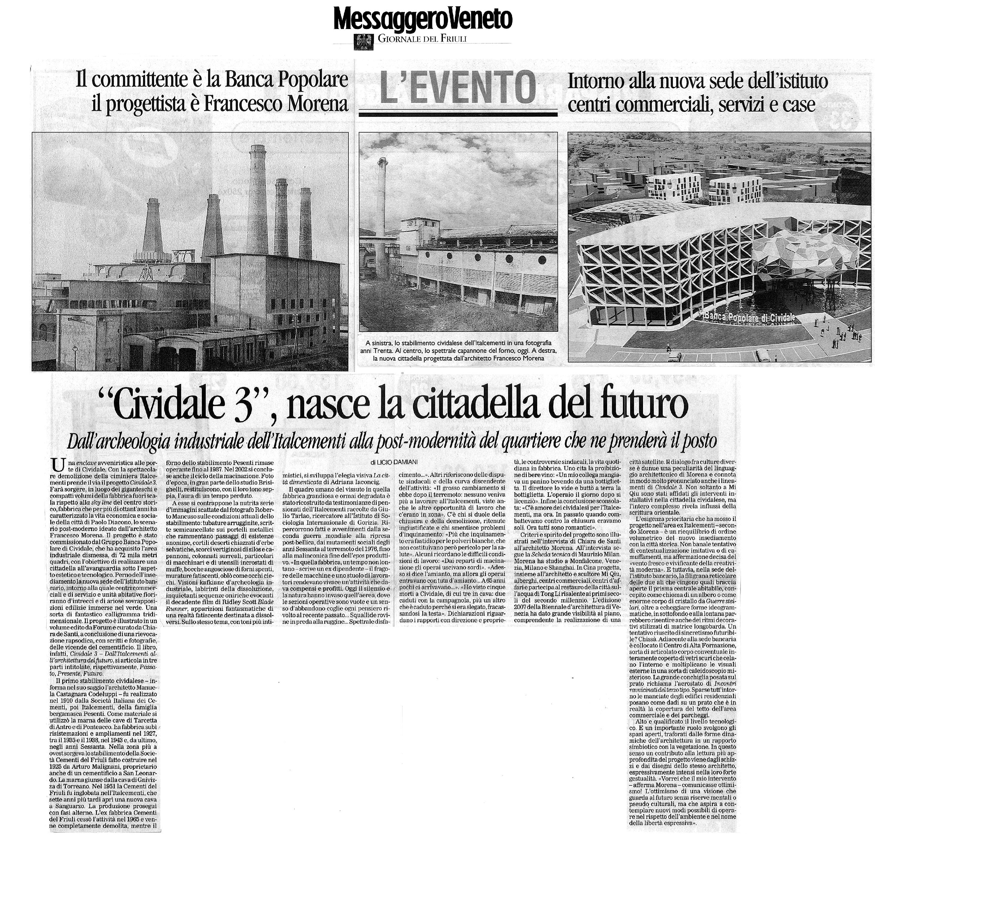 “Cividale 3” dall’Italcementi all’architettura del futuro – Messaggero Veneto (12 settembre)